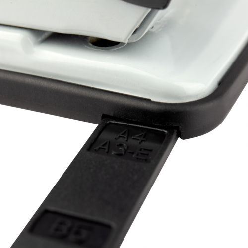 Діркопробивач Exakt-2 належить до металевої серії. Міцний металевий корпус і надійний металевий механізм забезпечують комфортну роботу діркопробивача і його довговічність, навіть при інтенсивному навантаженні. Леза довго залишаються гострими. Для зручності діркопробивач оснащений висувною обмежувальною лінійкою з точною шкалою форматів паперу (А3, А4, А5). Висувна лінійка необхідна для позиціонування аркушів паперу, які вставляються в діркопробивач, і дозволяє завжди отримувати точний результат і однакові стоси підшитих документів зі співпадаючими отворами. Знімний резервуар для конфетті відкривається м’яко. Прогумована підошва запобігає ковзанню діркопробивача по поверхні. Діаметр отвору 6 мм, відстань між пробитими отворами 80 мм.