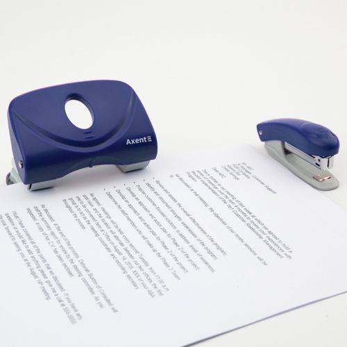 Діркопробивач Axent серії Welle-2 виділяється яскравим кольором і ергономічним дизайном рукоятки. Зроблений з якісного ABS-пластику – це сучасний матеріал міцний і легкий, не б’ється при падінні. Всі основні і робочі механізми – металеві, забезпечують надійну роботу діркопробивача. Леза довго залишаються гострими. Для зручності діркопробивач оснащений висувною обмежувальною лінійкою з точною шкалою форматів паперу (А3, А4, А5). Висувна лінійка необхідна для позиціонування аркушів паперу, які вставляються в діркопробивач, і дозволяє завжди отримувати точний результат і однакові стоси підшитих документів зі співпадаючими отворами. Знімний резервуар для конфетті відкривається м’яко. Прогумована підошва запобігає ковзанню діркопробивача по поверхні. Діаметр отвору 6 мм, відстань між пробитими отворами 80 мм.