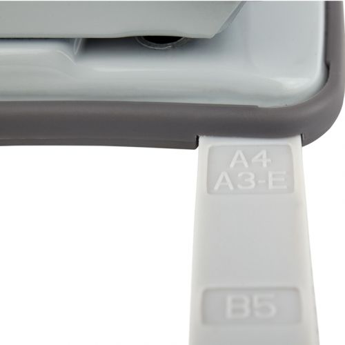Діркопробивач Axent серії Welle-2 виділяється яскравим кольором і ергономічним дизайном рукоятки. Зроблений з якісного ABS-пластику – це сучасний матеріал міцний і легкий, не б’ється при падінні. Всі основні і робочі механізми – металеві, забезпечують надійну роботу діркопробивача. Леза довго залишаються гострими. Для зручності діркопробивач оснащений висувною обмежувальною лінійкою з точною шкалою форматів паперу (А3, А4, А5). Висувна лінійка необхідна для позиціонування аркушів паперу, які вставляються в діркопробивач, і дозволяє завжди отримувати точний результат і однакові стоси підшитих документів зі співпадаючими отворами. Знімний резервуар для конфетті відкривається м’яко. Прогумована підошва запобігає ковзанню діркопробивача по поверхні. Діаметр отвору 6 мм, відстань між пробитими отворами 80 мм.