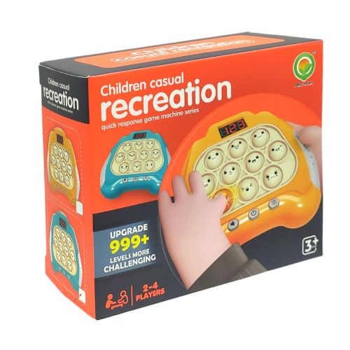 Інтерактивна міні приставка “Quick Push Pop It Console”, що нагадує відому антистрес гру “Поп іт”. Суть гри проста: потрібно, якнайшвидше, натискати на бульбашки, що підсвічуються. Процес гри супроводжується веселою мелодією. Декілька режимів гри. Розвиває дрібну моторику, ерудицію і просто піднімає настрій. Працює від 3-х батарейок ААА (немає в комплекті).