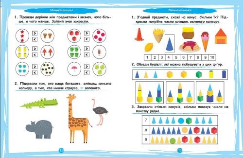 Книжка містить різноманітні вправи ля всебічного розвитку дитини віком від 4-х років. Завдання поділені на пять розділів: “Математика”, “Підготовка руки до письма”, “Правила етикету та безпечної поведінки”, “Логіка”, “Я і світ”. Завдяки цікавим та ефективним заняттям малюк зробить впевнені кроки у світ навчання із задоволенням. Книжка призначена для спільних занять дорослого та дитини. Кожна вправа укладена відповідно до вікових особливостей малюка.