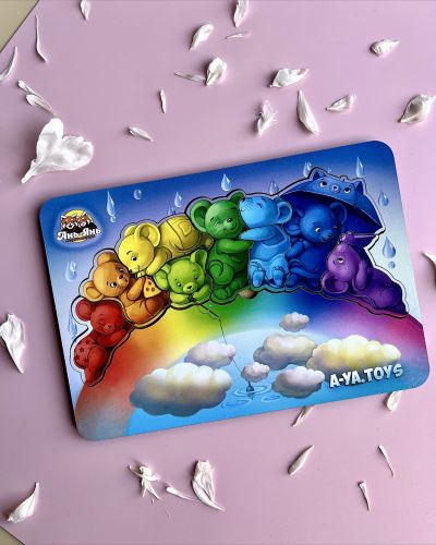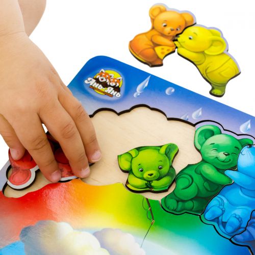 Яскравий тематичний фон цього зоопазлу дітям цікаво буде розглядати та вивчати у деталях, а 7 милих вкладишів-мишенят зручно діставати пальчиками та вкладати на своï місця за формою. Усі мишки сидять на веселцi за кольором. Можна також порахувати мишенят і придумати для кожного цікаве iм’я та історію. Зоопазл на уважність.