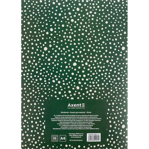 Зошит для записів Axent призначений для щоденних записів, ведення обліку, замальовки схем, графіків, фіксації великого обсягу інформації. М’яка обкладинка, кріплення на скобі. Білий папір в клітинку забезпечує комфортне письмо. Щільність паперу 55г/м2. Формат – стандартний, А4. Кількість аркушів – 96 в клітинку. Обкладинка: мелований картон щільністю 230 г/м² .
