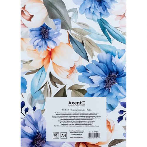 Зошит для записів Axent призначений для щоденних записів, ведення обліку, замальовки схем, графіків, фіксації великого обсягу інформації. М’яка обкладинка, кріплення на скобі. Білий папір в клітинку забезпечує комфортне письмо. Щільність паперу 55г/м2. Формат – стандартний, А4. Кількість аркушів – 96 в клітинку. Обкладинка: мелований картон щільністю 230 г/м² . Софт тач покриття на вибірковий УФ лак на обкладинці.