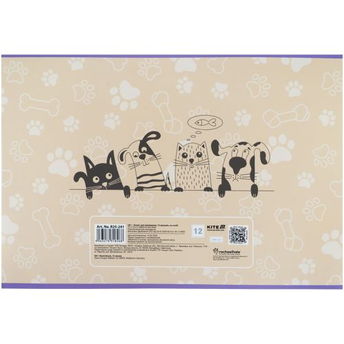 Горизонтальний зошит для малювання Kite в картонній обкладинці. Складається із 12 білих ущільнених (100 г/м2) аркушів формату А4, скріплених скобою з мікроперфорацією. Обкладинка представлена в асортименті (4 дизайни). Зошит для малювання рекомендований для дітей шкільного віку. Ефект на обкладинці: софт тач з вибірковим УФ-лаком.
