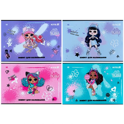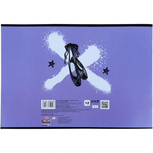 Горизонтальний зошит для малювання Kite в картонній обкладинці. Складається із 12 білих ущільнених (100 г/м2) аркушів формату А4, скріплених скобою з мікроперфорацією. Обкладинка представлена в асортименті (4 дизайни). Зошит для малювання рекомендований для дітей шкільного віку. Ефект на обкладинці: глітер та уф лак