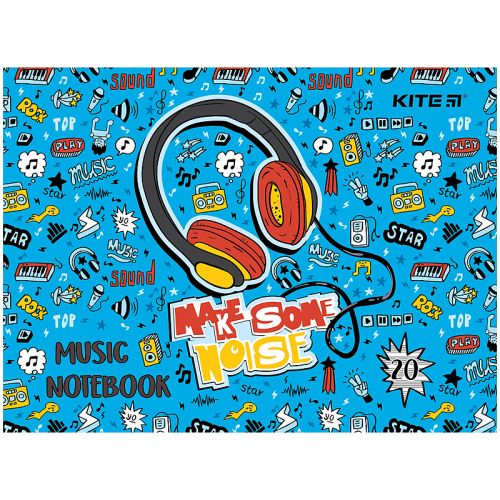 Зошит для нот Kite у зручному форматі А5, 20 л, щільність внутрішнього блоку 65г/м2. Схеми та підказки з нотної грамоти на форзацах. Яскравий дизайн.
