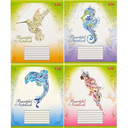 Зошит шкільний на скобі має 12 аркушів, представлений у зручному форматі А5. Аркуші в зошиті зроблені зі щільного паперу, розлініяні в лінію. Виріб представлено в ущільненій кольоровій обкладинці у 4 яскравих дизайнах. Продаються комплектом 20 штук в упаковці.