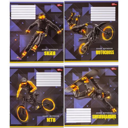 Зошит шкільний на скобі має 18 аркушів, представлений у зручному форматі А5. Аркуші в зошиті зроблені зі щільного паперу, розлініяні в лінію. Виріб представлено в ущільненій кольоровій обкладинці у 4 яскравих дизайнах. Продаються комплектом 20 штук в упаковці.