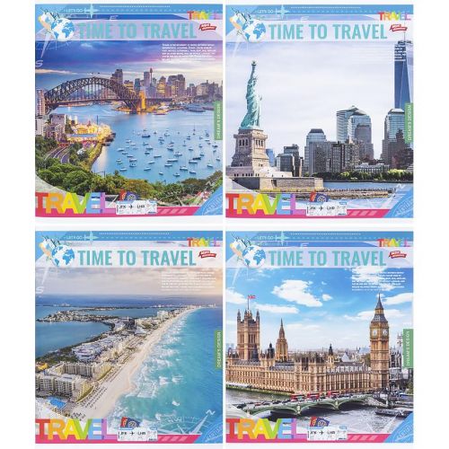 Зошит шкільний на скобі має 96 аркушів, представлений у зручному форматі А5. Аркуші в зошиті зроблені зі щільного паперу, розлініяні в клітинку. Виріб представлено в ущільненій кольоровій обкладинці у 4 яскравих дизайнах. Продаються комплектом 8 штук в упаковці.