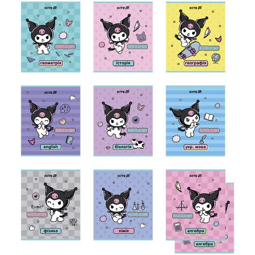 Набір предметних зошитів Kite серії Kuromi – неймовірно яскравий та надихаючий комплект для навчання. Він складається з 10 предметних зошитів з тематичними обкладинками. Вони заохочуватимуть до успішного навчання та надихатимуть з радістю пізнавати усі шкільні дисципліни. Особливості: • в наборі – 10 предметних зошитів. З них 48 аркушів в клітинку це – Алгебра (2 шт), Географія, Геометрія, Історія, Фізика, Хімія, Біологія; 48 аркушів в лінію – Англійська мова; 24 аркуші в лінію – Українська мова; • зручний стандартний формат А5; • всередині кожного зошиту – шпаргалки з предмету; • яскраві обкладинки доповнені фактурними елементами, що підкреслюють особливості дизайну. Ефект на обкладинці: софт тач + вибірковий УФ лак.