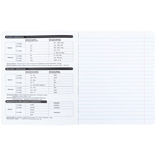 Зошит загальний на скобі Kite має 48 аркуші, представлений у зручному форматі А5. Аркуші в зошиті зроблені зі щільного паперу, розлініяні в лінію. Виріб представлено в ущільненій кольоровій обкладинці. Додаткові акуші з довідковими матеріалами. Ефект на обкладинці: софт тач та вибірковий УФ лак.
