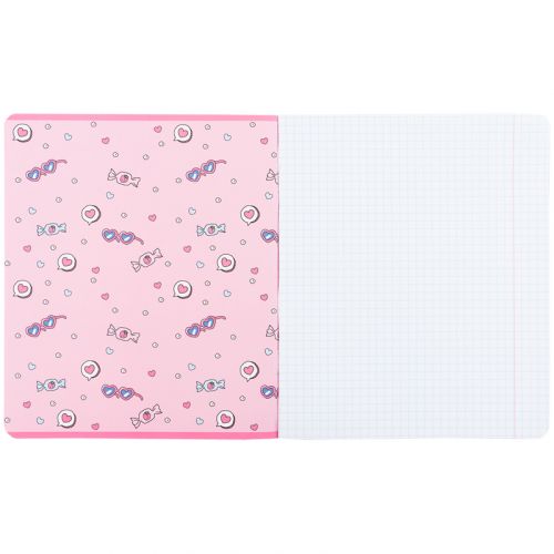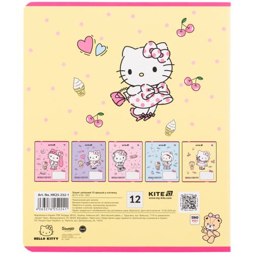 Зошит шкільний на скобі Kite має 12 аркушів, представлений у зручному форматі А5. Аркуші в зошиті зроблені зі щільного паперу, розлініяні в клітинку. Виріб представлено в ущільненій кольоровій обкладинці з ліцензованим зображенням в 5 дизайнах. Ефект на обкладинці: гібридний лак та вибірковий УФ лак. Кольорова задруківка форзаца.