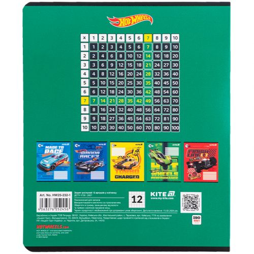 Зошит шкільний на скобі Kite має 12 аркушів, представлений у зручному форматі А5. Аркуші в зошиті зроблені зі щільного паперу, розлініяні в клітинку. Виріб представлено в ущільненій кольоровій обкладинці з ліцензованим зображенням в 5 дизайнах. Ефект на обкладинці: гібридний лак та вибірковий УФ лак. Кольорова задруківка форзаца.
