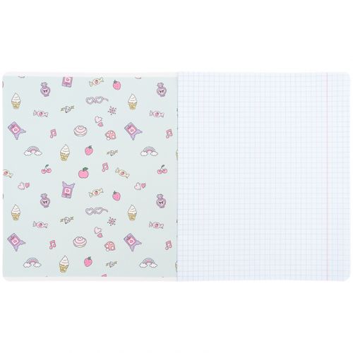 Зошит шкільний на скобі Kite має 12 аркушів, представлений у зручному форматі А5. Аркуші в зошиті зроблені зі щільного паперу, розлініяні в клітинку. Виріб представлено в ущільненій кольоровій обкладинці з ліцензованим зображенням в 5 дизайнах. Ефект на обкладинці: софт-тач ламінація з вибірковим УФ-лаком. Кольорова задруківка форзаца.