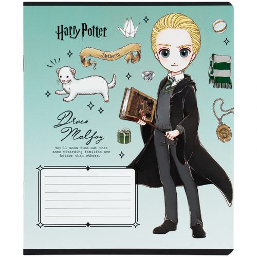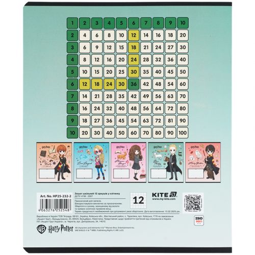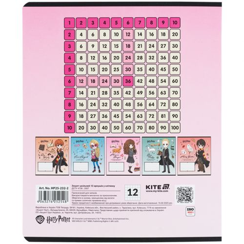 Зошит шкільний на скобі Kite має 12 аркушів, представлений у зручному форматі А5. Аркуші в зошиті зроблені зі щільного паперу, розлініяні в клітинку. Виріб представлено в ущільненій кольоровій обкладинці з ліцензованим зображенням в 5 дизайнах. Ефект на обкладинці: софт-тач ламінація з вибірковим УФ-лаком. Кольорова задруківка форзаца.