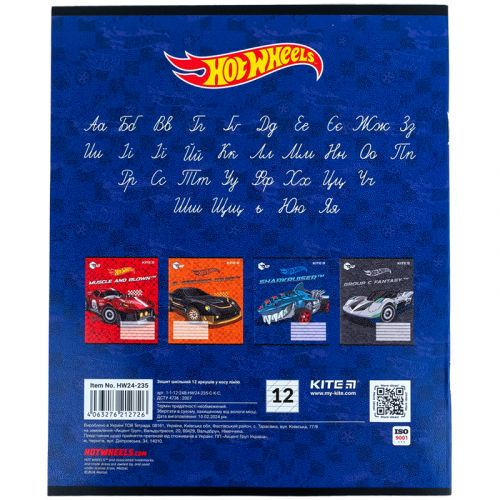 Зошит шкільний на скобі Kite має 12 аркушів, представлений у зручному форматі А5. Аркуші в зошиті зроблені зі щільного паперу, розлініяні в косу лінію. Виріб представлено в ущільненій кольоровій обкладинці з ліцензованим зображенням в 4 дизайнах. Ефект на обкладинці: гібридний лак та вибірковий УФ лак. Кольорова задруківка форзаца.