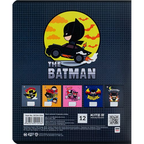 Зошит шкільний на скобі Kite має 12 аркушів, представлений у зручному форматі А5. Аркуші в зошиті зроблені зі щільного паперу, розлініяні в лінію. Виріб представлено в ущільненій кольоровій обкладинці з ліцензованими зображеннями в 5 дизайнах. Ефект на обкладинці: гібридний лак та вибірковий УФ лак. Кольорова задруківка форзаца.