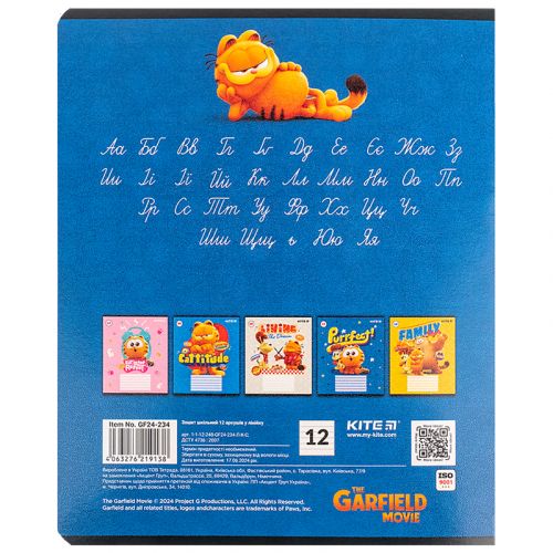 Зошит шкільний на скобі Kite має 12 аркушів, представлений у зручному форматі А5. Аркуші в зошиті зроблені зі щільного паперу, розлініяні в лінію. Виріб представлено в ущільненій кольоровій обкладинці з ліцензованими зображеннями в 5 дизайнах. Ефект на обкладинці: гібридний лак та вибірковий УФ лак. Кольорова задруківка форзаца.