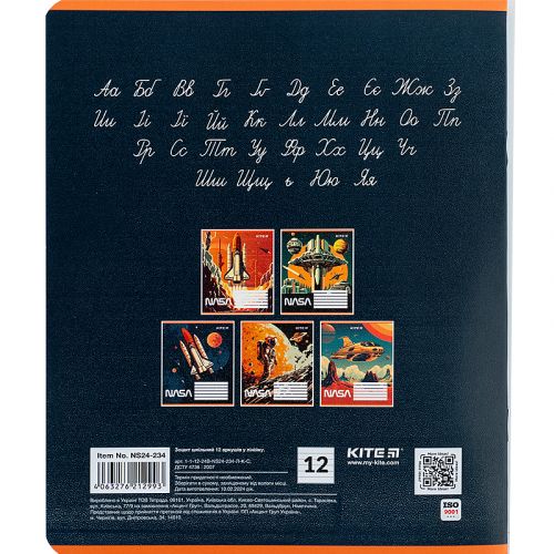 Зошит шкільний на скобі Kite має 12 аркушів, представлений у зручному форматі А5. Аркуші в зошиті зроблені зі щільного паперу, розлініяні в лінію. Виріб представлено в ущільненій кольоровій обкладинці з ліцензованими зображеннями в 5 дизайнах. Ефект на обкладинці: гібридний лак та вибірковий УФ лак. Кольорова задруківка форзаца.