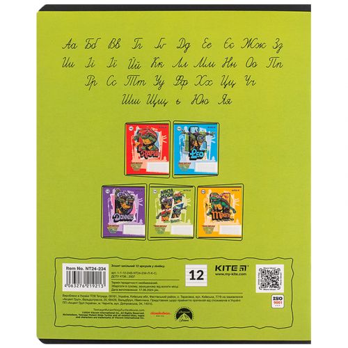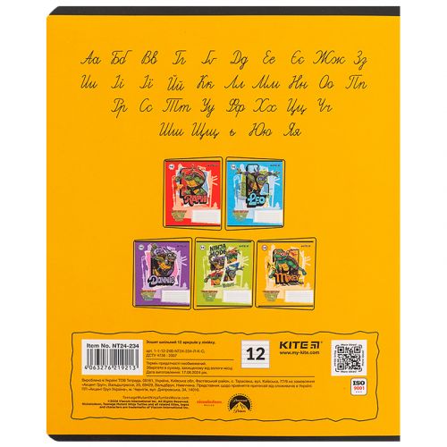Зошит шкільний на скобі Kite має 12 аркушів, представлений у зручному форматі А5. Аркуші в зошиті зроблені зі щільного паперу, розлініяні в лінію. Виріб представлено в ущільненій кольоровій обкладинці з ліцензованими зображеннями в 5 дизайнах. Ефект на обкладинці: софт тач та вибірковий УФ лак. Кольорова задруківка форзаца.