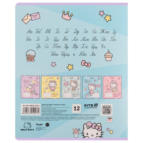 Зошит шкільний на скобі Kite має 12 аркушів, представлений у зручному форматі А5. Аркуші в зошиті зроблені зі щільного паперу, розлініяні в лінію. Виріб представлено в ущільненій кольоровій обкладинці з ліцензованими зображеннями в 5 дизайнах. Ефект на обкладинці:уф-лак та глітер. Кольорова задруківка форзаца.