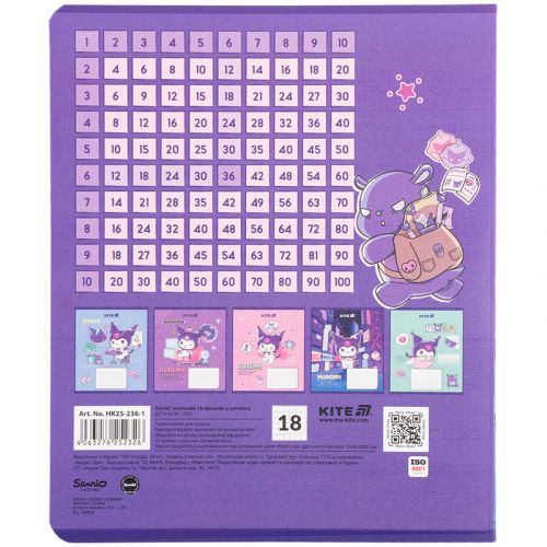 Зошит шкільний на скобі Kite має 18 аркушів, представлений у зручному форматі А5. Аркуші в зошиті зроблені зі щільного паперу, розлініяні в клітинку. Виріб представлено в ущільненій кольоровій обкладинці з ліцензованим зображеннями в 5 дизайнах. Ефект на обкладинці: гібридний. лак + УФ лак. Кольорова задруківка форзаца.