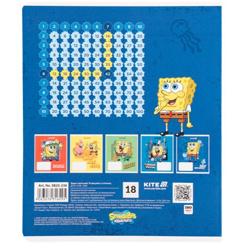 Зошит шкільний на скобі Kite має 18 аркушів, представлений у зручному форматі А5. Аркуші в зошиті зроблені зі щільного паперу, розлініяні в клітинку. Виріб представлено в ущільненій кольоровій обкладинці з ліцензованим зображеннями в 5 дизайнах. Ефект на обкладинці: гібридний. лак + УФ лак. Кольорова задруківка форзаца.