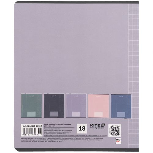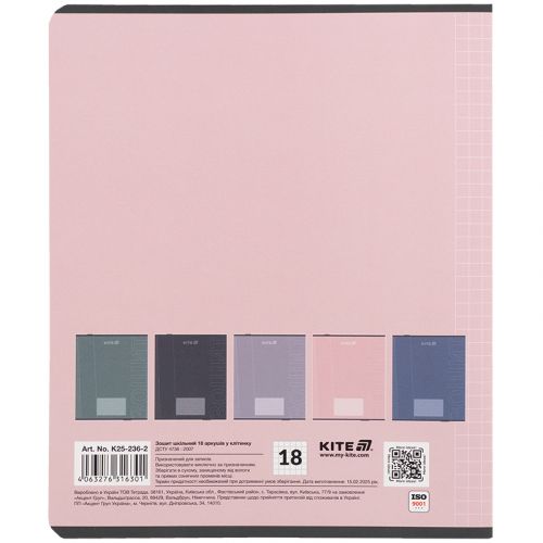 Зошит шкільний на скобі Kite має 18 аркушів, представлений у зручному форматі А5. Аркуші в зошиті зроблені зі щільного паперу, розлініяні в клітинку. Виріб представлено в ущільненій кольоровій обкладинці з ліцензованим зображенням в 5 дизайнах. Ефект на обкладинці: софт тач та УФ-лак. Кольорова задруківка форзаца.