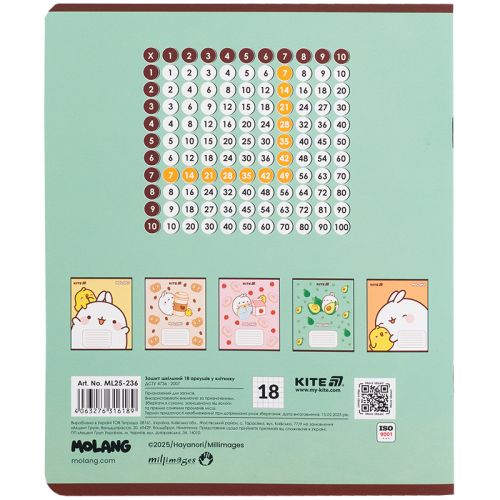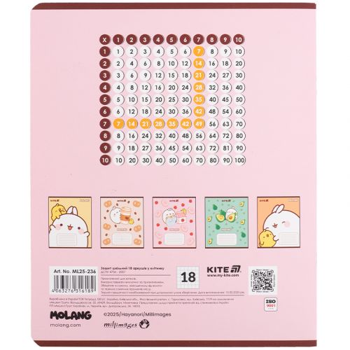 Зошит шкільний на скобі Kite має 18 аркушів, представлений у зручному форматі А5. Аркуші в зошиті зроблені зі щільного паперу, розлініяні в клітинку. Виріб представлено в ущільненій кольоровій обкладинці з ліцензованим зображеннями в 5 дизайнах. Ефект на обкладинці: софт тач + УФ лак. Кольорова задруківка форзаца.