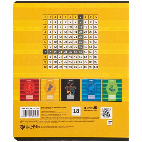 Зошит шкільний на скобі Kite має 18 аркушів, представлений у зручному форматі А5. Аркуші в зошиті зроблені зі щільного паперу, розлініяні в клітинку. Виріб представлено в ущільненій кольоровій обкладинці в 5 дизайнах. Ефект на обкладинці: фольга золото та вибірковий УФ лак. Кольорова задруківка форзаца.