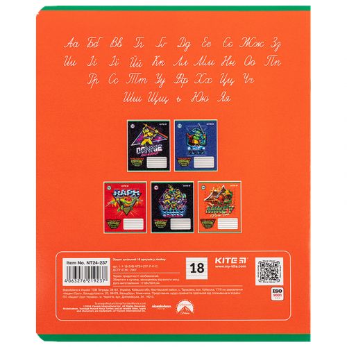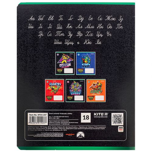 Зошит шкільний на скобі Kite має 18 аркушів, представлений у зручному форматі А5. Аркуші в зошиті зроблені зі щільного паперу, розлініяні в лінійку. Виріб представлено в ущільненій кольоровій обкладинці з ліцензованими зображеннями в 5 дизайнах. Ефект на обкладинці: гібридний лак + вибірковий УФ лак. Кольорова задруківка форзаца.