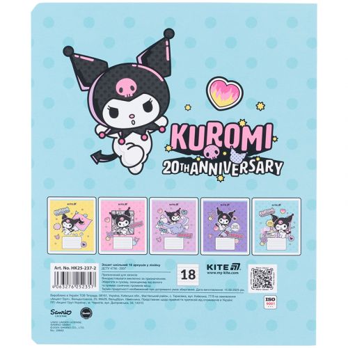 Зошит шкільний на скобі Kite має 18 аркушів, представлений у зручному форматі А5. Аркуші в зошиті зроблені зі щільного паперу, розлініяні в лінійку. Виріб представлено в ущільненій кольоровій обкладинці з ліцензованими зображеннями в 5 дизайнах. Ефект на обкладинці: софт-тач ламінація та вибірковий УФ лак. Кольорова задруківка форзаца.