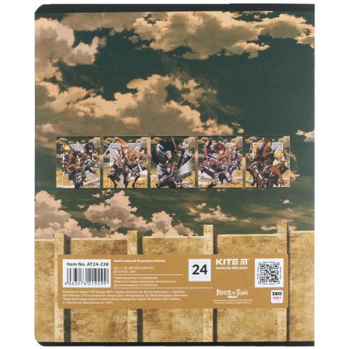 Зошит шкільний на скобі Kite має 24 аркуші, представлений у зручному форматі А5. Аркуші в зошиті зроблені зі щільного паперу, розлініяні в клітинку. Виріб представлено в ущільненій кольоровій обкладинці в 5 дизайнах. Ефект на обкладинці: софт тач ламінація та УФ лак . Кольорова задруківка форзаца, подвійна обкладинка.