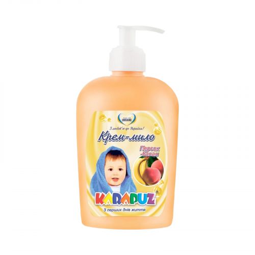 Рідке мило на основі кокосової олії та екстрактів персика і банана. Підходить для найчутливішої шкіри. Надає зволожувальну дію, тому після його вживання немає потреби наносити крем або молочко. Мило делікатно очищує шкіру, помʼякшує її.Зручне у використанні завдяки своєму флакончику із дозатором. Застосування: нанесіть невелику кількість засобу на руки та змийте теплою водою. Склад: вода, лаурилефірсульфат натрію, кокоамфодіацетат, діетаноламід жирних кислот кокосової олії, перламутр, гліцерин, екстракти персика і банана, консервант ніпагард, лимонна кислота, ароматизатор персика і банана, хлорид натрію.