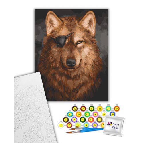 Комплектація: полотно на підрамнику з галерейною натяжкою, паперовий дублікат з контурним малюнком картини (на картині нанесена схема контурів зображення з нумерацією), художні нейлонові пензлі, палітра акрилових фарб у контейнерах