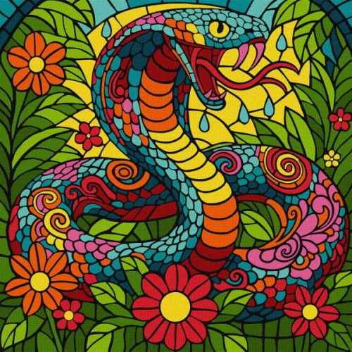 Картина за номерами – “Вітраж. Тропічна кобра” ©art_selena_ua, 30х30см