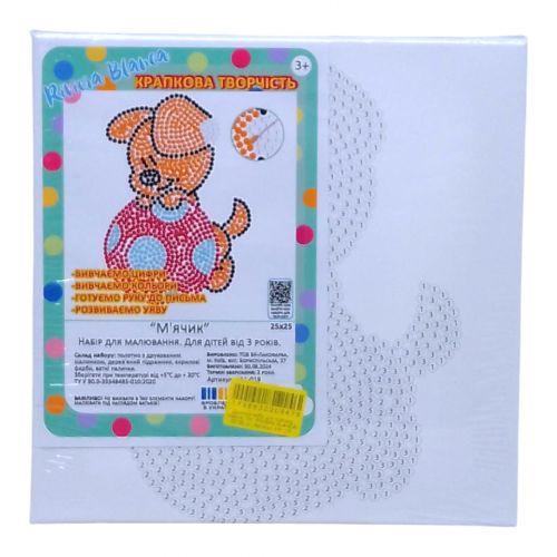 Картина за номерами, з ватними паличками “Крапкова творчість. Мʼячик” (25х25 см)