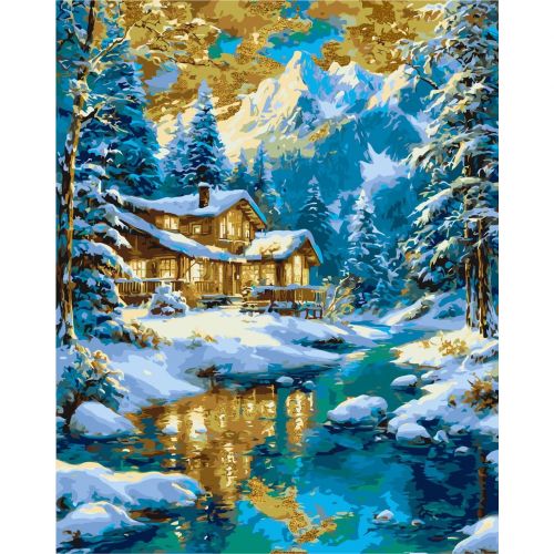Картина за номерами з фарбами металік “Зимовий вечір у горах” 40х50 см