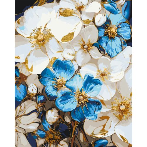 Картина за номерами з фарбами металік “Біло-блакитні квіти” 40х50 см