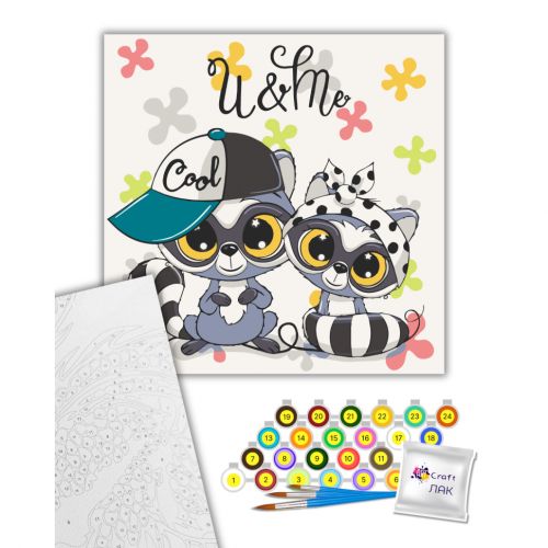 Картина за номерами. Для того, щоб намалювати картину, необхідно малювати за пронумерованими контурами, які відповідають кольору фарби. У наборі: полотно на підрамнику з галерейною натяжкою, паперовий дублікат з контурним малюнком картини (на картині нанесена схема контурів зображення з нумерацією), художні нейлонові пензлі, палітра акрилових фарб у контейнерах. Усі необхідні фарби вже в комплекті та не вимагають змішування. Розмір: 30х30 см.