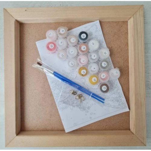Картина за номерами. Для того, щоб намалювати картину, необхідно малювати за пронумерованими контурами, які відповідають кольору фарби. У наборі: полотно на підрамнику з галерейною натяжкою, паперовий дублікат з контурним малюнком картини (на картині нанесена схема контурів зображення з нумерацією), художні нейлонові пензлі, палітра акрилових фарб у контейнерах. Усі необхідні фарби вже в комплекті та не вимагають змішування. Розмір: 30х30 см.