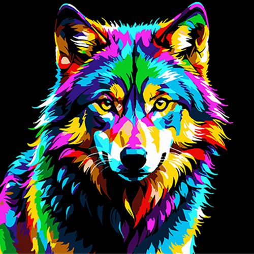 Картина за номерами на чорному фоні “Барвистий вовк” 30х30 см