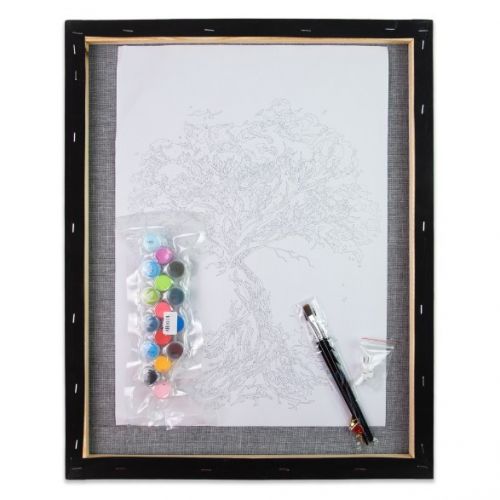 Комплектація: Полотно на підрамнику з галерейною натяжкою, паперова інструкція з контурним малюнком картини, нейлонові пензлі, палітра акрилових фарб у контейнерах