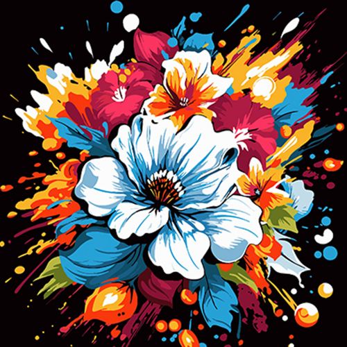 Картина за номерами на чорному фоні “Квітковий вибух” 40х40