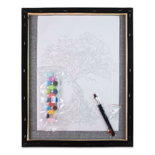 Комплектація: Полотно на підрамнику з галерейною натяжкою, паперова інструкція з контурним малюнком картини, нейлонові пензлі, палітра акрилових фарб у контейнерах
