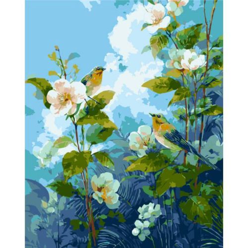 Картина за номерами “Ніжність весни: птахи серед цвіту” 40х50 см