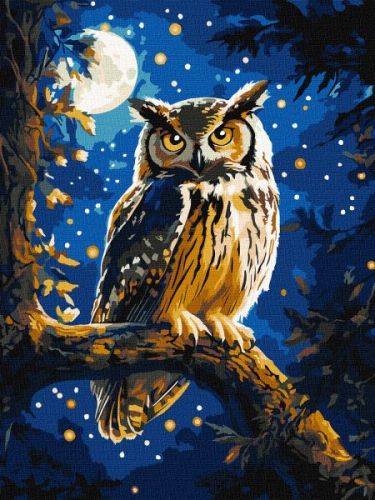 Картина за номерами – Нічна сова з фарбами металік extra 30х40 см.