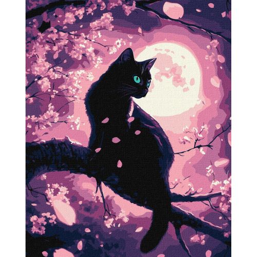 Картина за номерами “Чарівний кіт серед сакури” з фарбами металік, 40х50 см