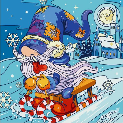 Картина за номерами. Для того, щоб намалювати картину, необхідно малювати за пронумерованими контурами, які відповідають кольору фарби. У наборі: полотно на підрамнику з галерейною натяжкою, паперовий дублікат з контурним малюнком картини (на картині нанесена схема контурів зображення з нумерацією), художні нейлонові пензлі, палітра акрилових фарб у контейнерах. Усі необхідні фарби вже в комплекті та не вимагають змішування. Розмір: 40х40 см.